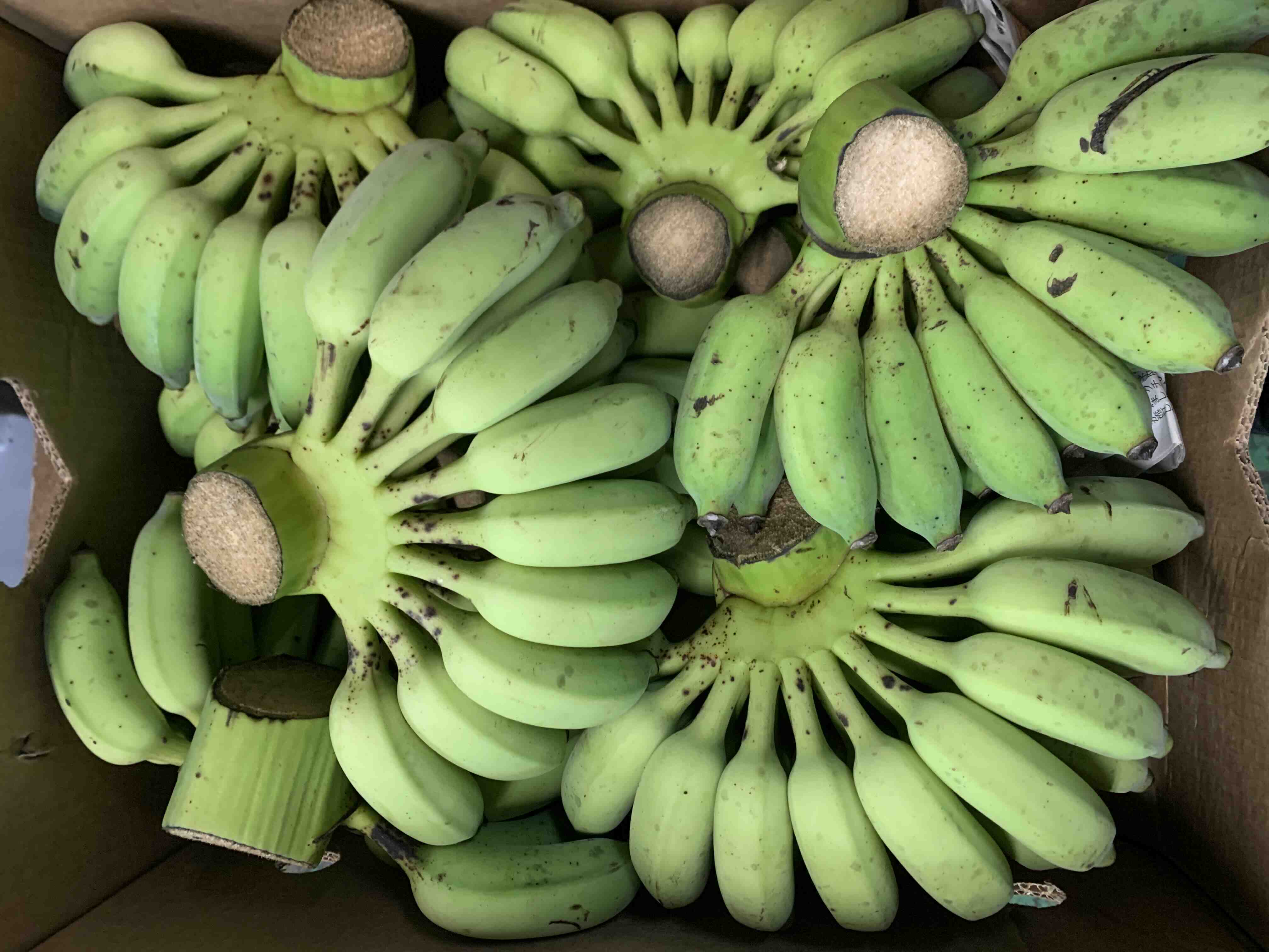 - 通常のバナナより短く、丸みのあるずんぐりとした形。